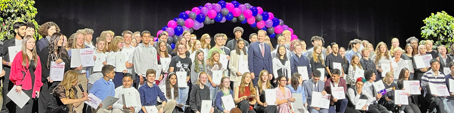 Drei unserer SchülerInnen wurden im Rahmen der Veranstaltung School Heroes 2024 am 3. Juli 2024 geehrt. Auf Einladung von Oberbürgermeister Keller wurden Simon Hölzer, Manal Ait Amer und Manal Ghambou für herausragende schulische Leistungen und besonderes Engagement ausgezeichnet. Herzlichen Glückwunsch!